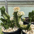 This rare plant, the Buddha's Temple is a true masterpiece of nature, celebrated for its mesmerizing geometric symmetry and architectural elegance. Its thick, heart-shaped leaves are tightly stacked to form a perfectly square, pagoda-like column that brings a sense of tranquility to any space. A slow-growing gem, this specimen develops a beautiful silvery-green hue, often accented by soft white or pale pink star-shaped flowers that emerge in dense clusters at its crown. Resilient and low-maintenance, this rare variety thrives in bright light and well-draining soil, making it a prized centerpiece for both novice and expert collectors.