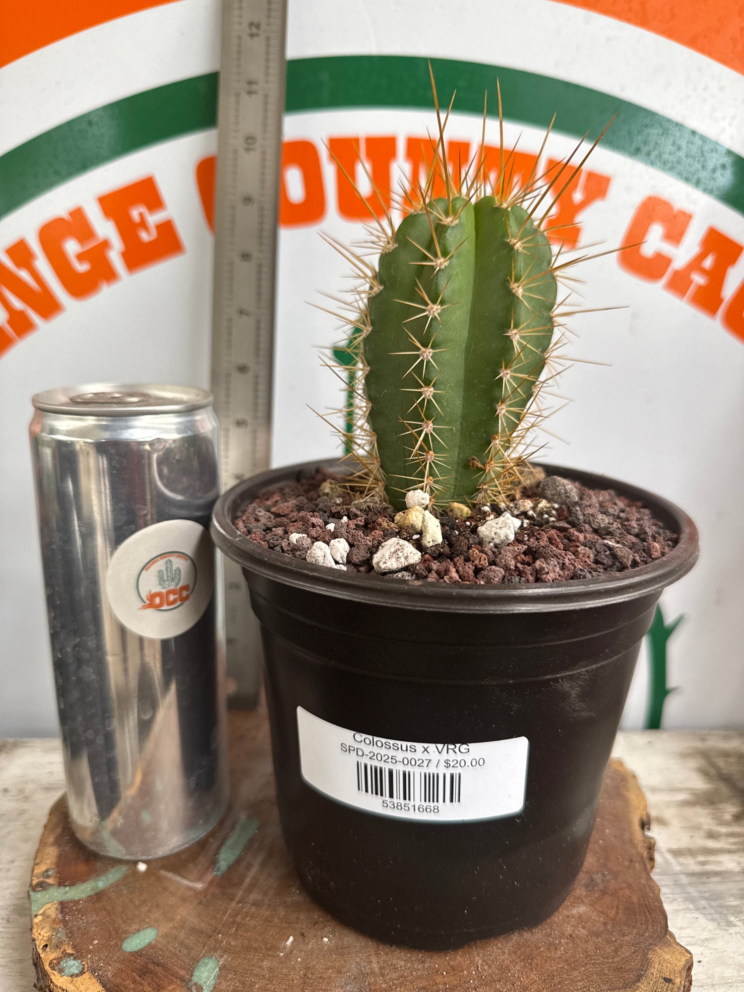 Growth and Appearance: While specific details for this exact cross can vary, 'Colossus' is known for its robust, columnar form, and 'VRG' can contribute to interesting color variations. Generally, Trichocereus species are columnar in shape and can grow quite large.