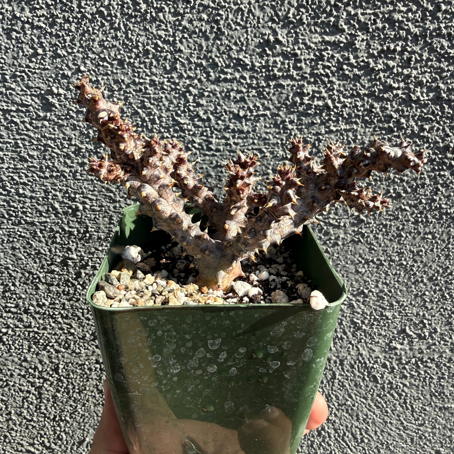 Edithcolea Grandis typically features stems with 4 or 5 angles, the "SQ" form refers to plants that consistently maintain a four-angled, square appearance.