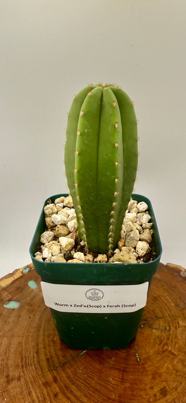 Parentage: The name "Worm x Zed's" indicates that it's a hybrid, with "Worm" and "Zed's" being the two parent plants. Both "Worm" and "Zed's" are generally considered to be Trichocereus scopulicola (often shortened to "Scop") or Trichocereus scopulicola hybrids themselves. This means "Worm x Zed's" is likely a Scop x Scop hybrid.